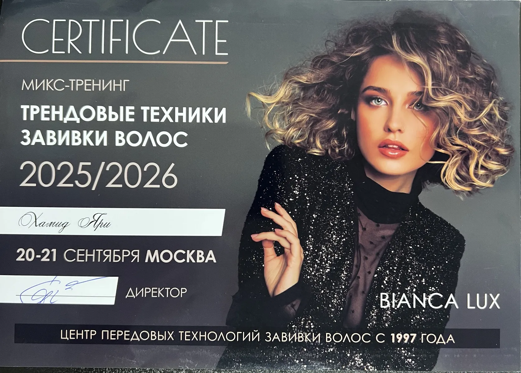 حمید یاری با دریافت مدرک معتبر از برترین آکادمیهای آرایشگری در روسیه، آخرین متدهای روز دنیا در زمینه فر موی مردانه را فراگرفته و به صورت حرفهای اجرا میکند.